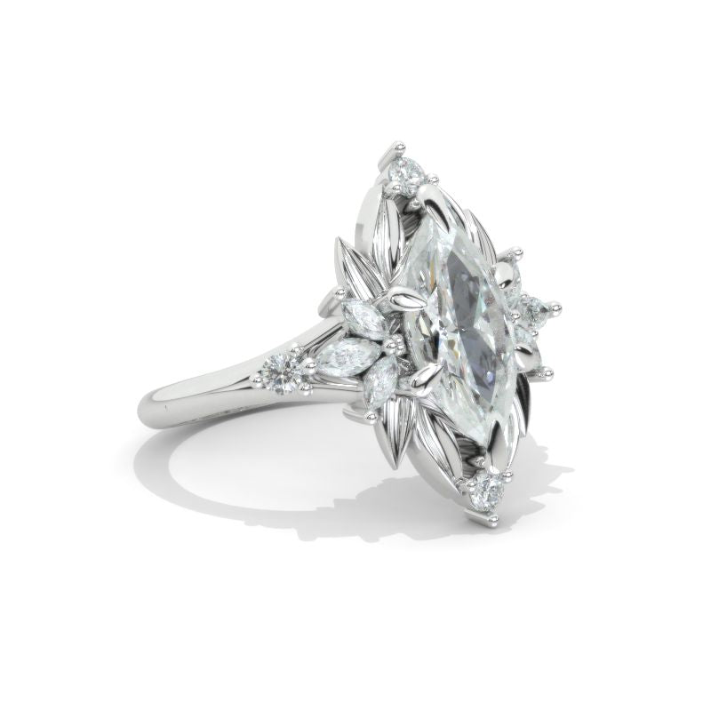 Engagement Ring: Approximately 1.5+ Carat LAB-Grown Diamond Marquise 12x6mm D-Colorless VVS1-Clarity, VG-Cut, Ex-Polish, VG-Symmetry Center Stone with Colorless 0.7 CTW LAB-Grown Diamond