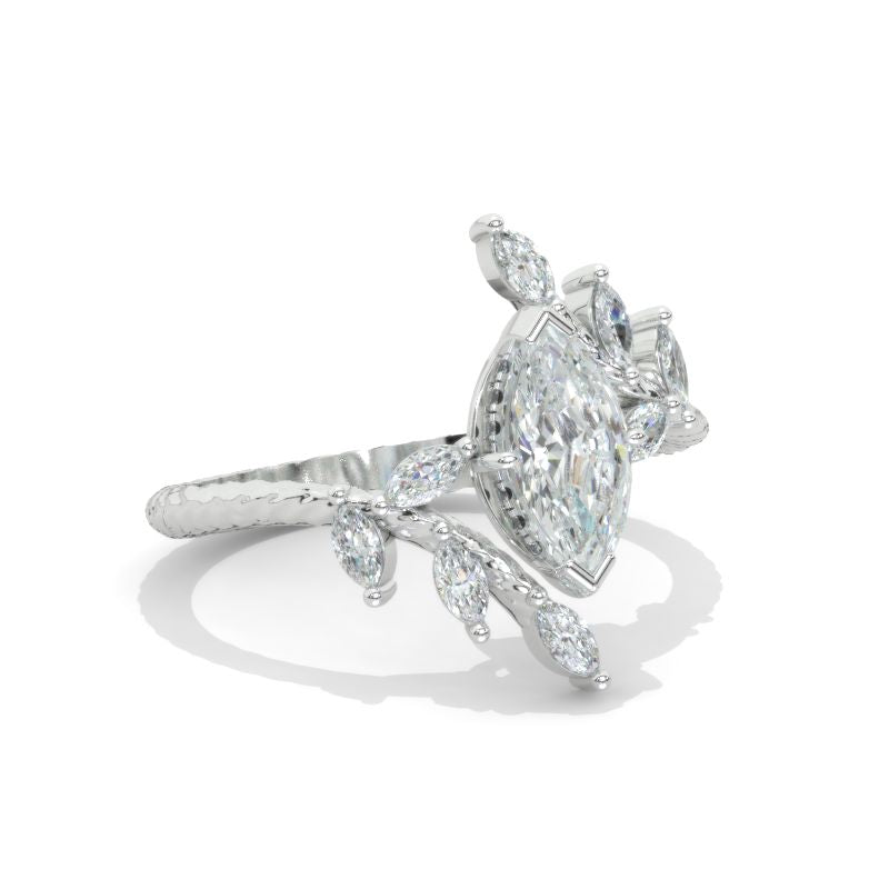 Engagement Ring: Approximately 1.5+ Carat LAB-Grown Diamond Marquise 10x5mm D-Colorless VVS1-Clarity, VG-Cut, Ex-Polish, VG-Symmetry Center Stone with Colorless 0.4 CTW LAB-Grown Diamond