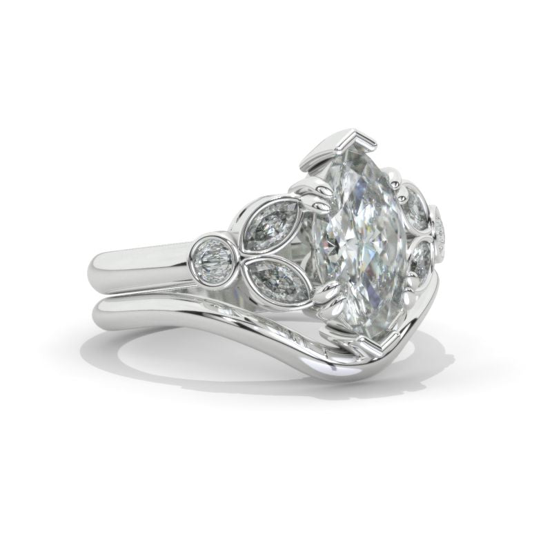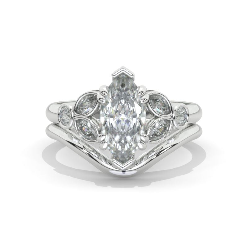 Engagement Ring: Approximately 1.5+ Carat LAB-Grown Diamond Marquise 12x6mm D-Colorless VVS1-Clarity, VG-Cut, Ex-Polish, VG-Symmetry Center Stone set with LAB-Grown Diamond Accents in 14K White Gold Ring Set.