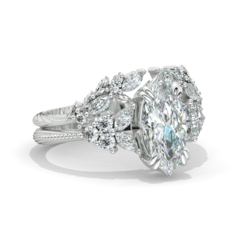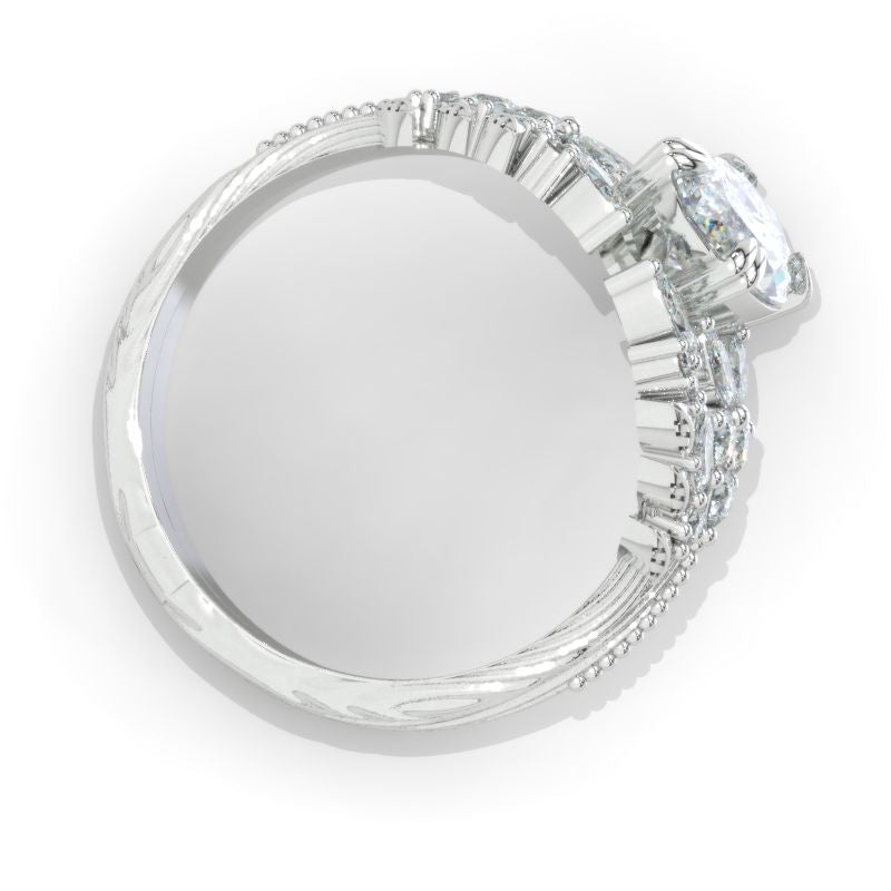 Engagement Ring: 1.5 Carat Giliarto Moissanite Marquise 12x6mm D-Colorless VVS1-Clarity, VG-Cut, Ex-Polish, VG-Symmetry Center Stone with Colorless 0.9 CTW Moissanite
