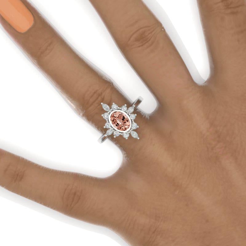 14K White Gold 1.5 Carat Oval Genuine Peach Morganite Halo Engagement Ring Model 403