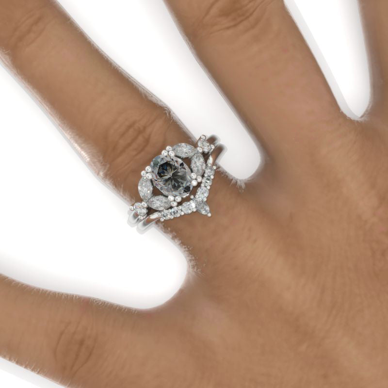 Engagement Ring Approximately 1.5 Carat Giliarto Gray Moissanite 8x6mm Oval Gray- Color, VVS1-Clarity, VG-Cut, Ex-Polish, VG-Symmetry Center Stone inÂ