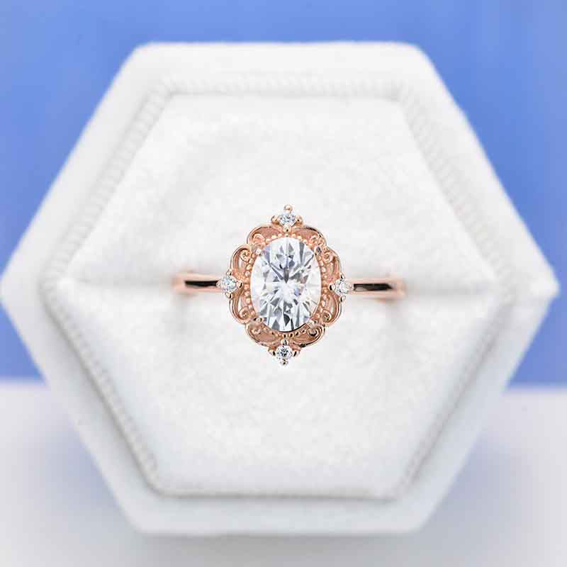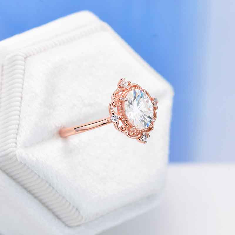 (D-Colorless, VVS1 clarity) Accent Stones 14K Rose Gold Ring.