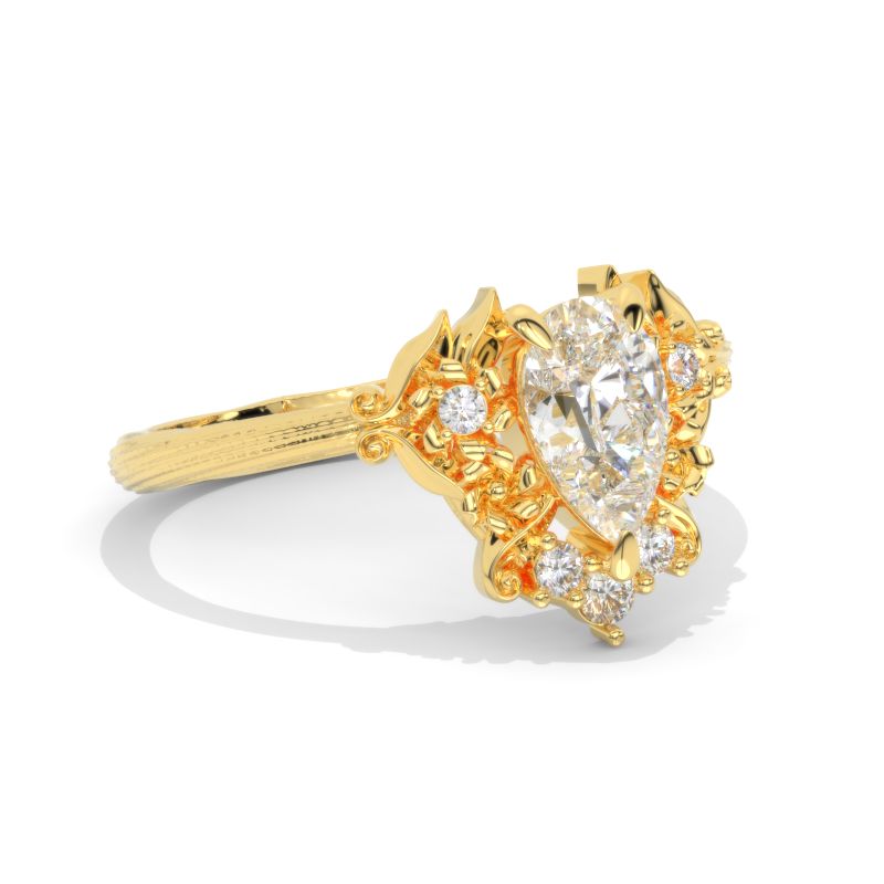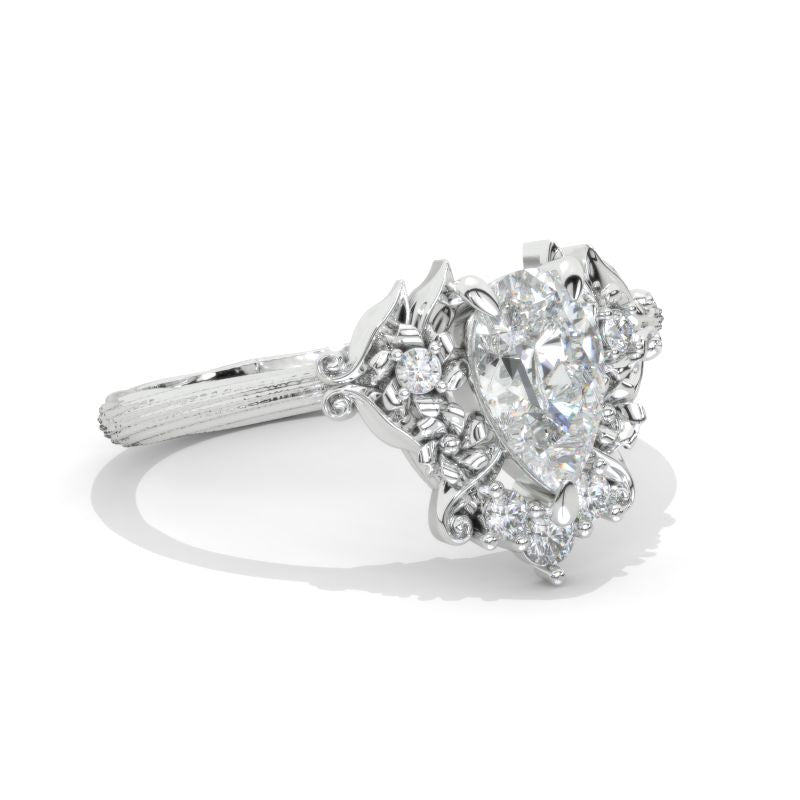 1.5 Carat Moissanite Pear Cut 8x5mm D-Colorless VVS1-Clarity, VG-Cut, Ex-Polish, VG-Symmetry Center Stone with Colorless 0.2 CTW Moissanite (D-Colorless VVS1 clarity) Accent Stones 14K White Gold Ring.