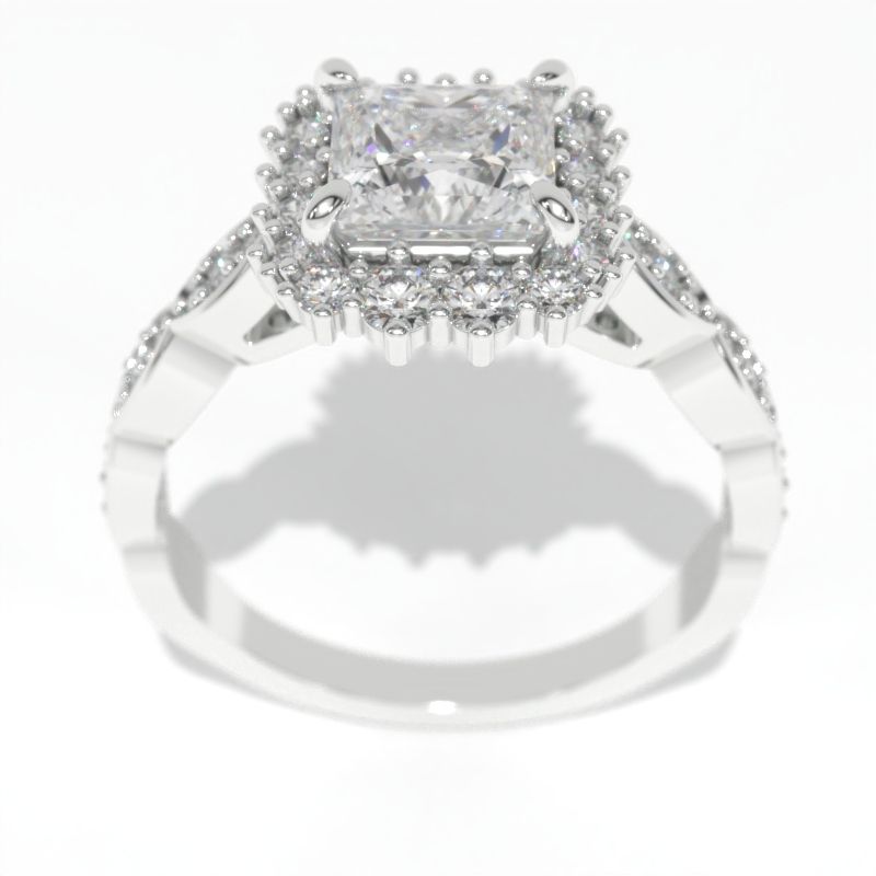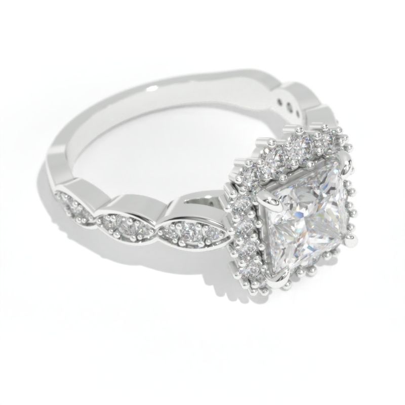 Approximately 1.5+ Carat LAB-Grown Diamond Princess 6x6mm D-Colorless VVS1-Clarity, VG-Cut, Ex-Polish, VG-Symmetry Center Stone with 30 Colorless 0.8 CTW LAB-Grown Diamond (D-Colorless, VVS1clarity) Accent Stones 14K White Gold Ring.