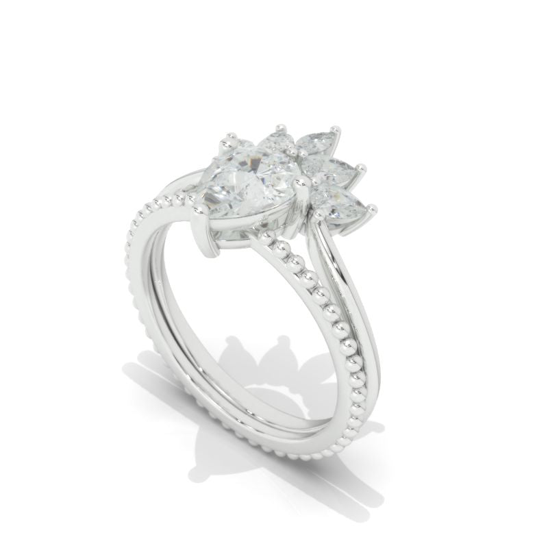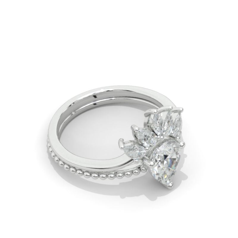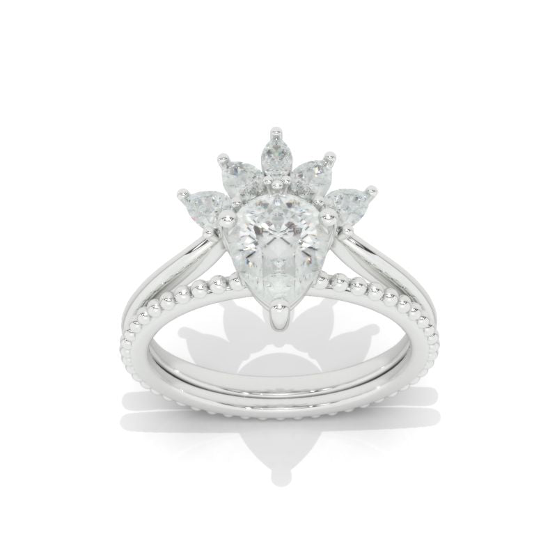 Engagement RingApproximately 1.5+ Carat LAB-Grown Diamond Pear 8x6mm D-Colorless, VVS1-Clarity, VG-Cut, Ex-Polish, VG-Symmetry Center Stone Set with Colorless LAB-Grown Diamond Accent stones in 14K White Gold Ring.