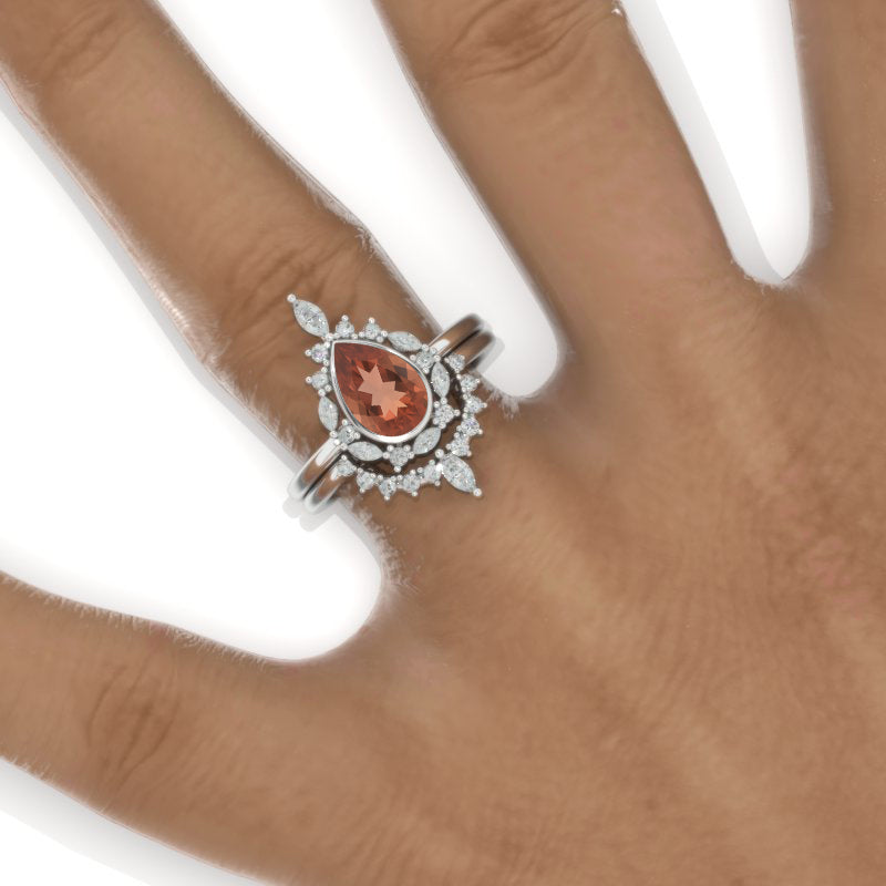 Engagement Ring 1.2 Carat Ethically Lab-Grown Zultanite Grade AAA+ Pear 8x6mm VG-Cut, Ex-Polish, VG-Symmetry Center Stone with 38 D-Colorless 0.5 CTW Moissanite
