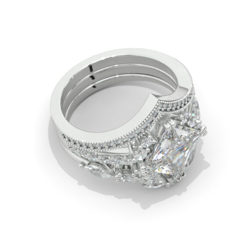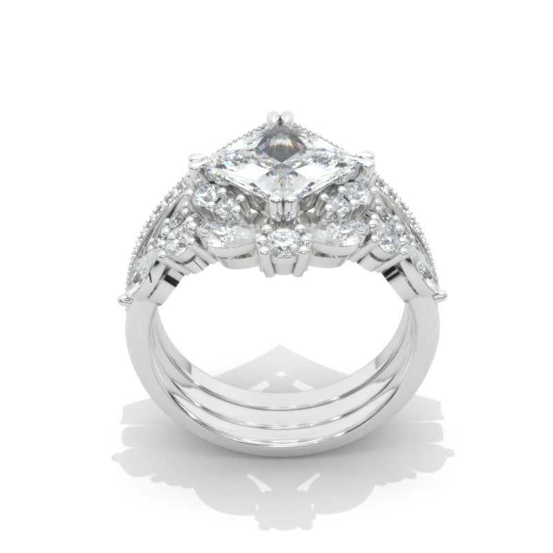 Engagement Ring : 2 Carat Giliarto Moissanite Princess Cut 7x7mm D-Colorless, VVS1-Clarity, VG-Cut, Ex-Polish, VG-Symmetry Center Stone with 38 Colorless 0.5 CTW Moissanite