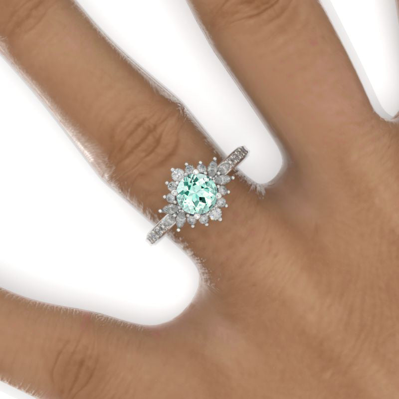 14K White Gold 1 Carat Mint Sapphire Halo Engagement Ring - Giliarto
