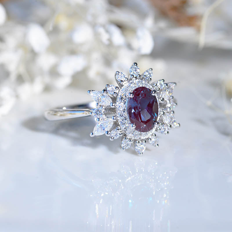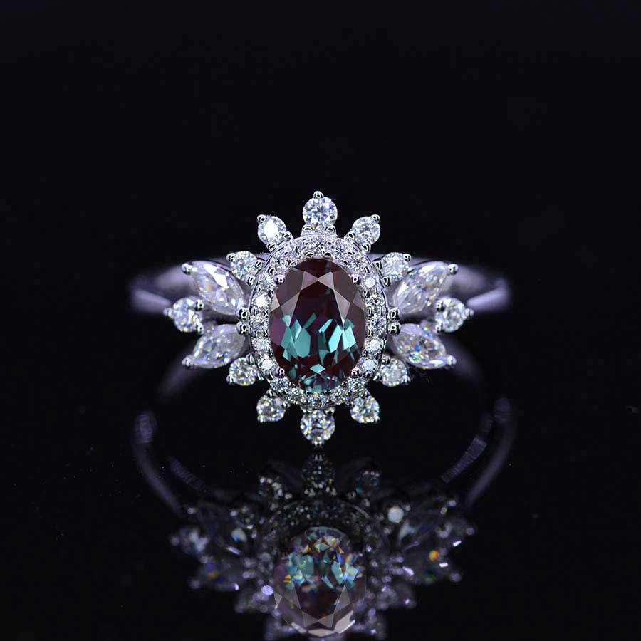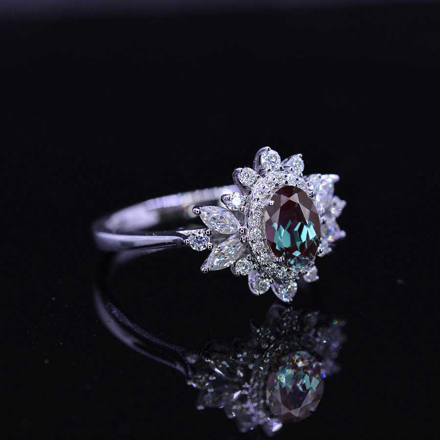 Engagement Ring :  Ethically Lab-Grown Alexandrite Oval 7x5 mm, VG-Cut,