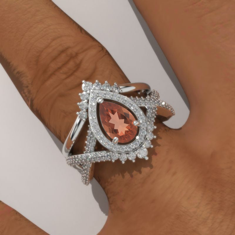 Engagement Ring 1 Carat Ethically Lab-Grown Zultanite Grade AAA+ Pear 8x6mm VG-Cut, Ex-Polish, VG-Symmetry Center Stone with 124 Colorless