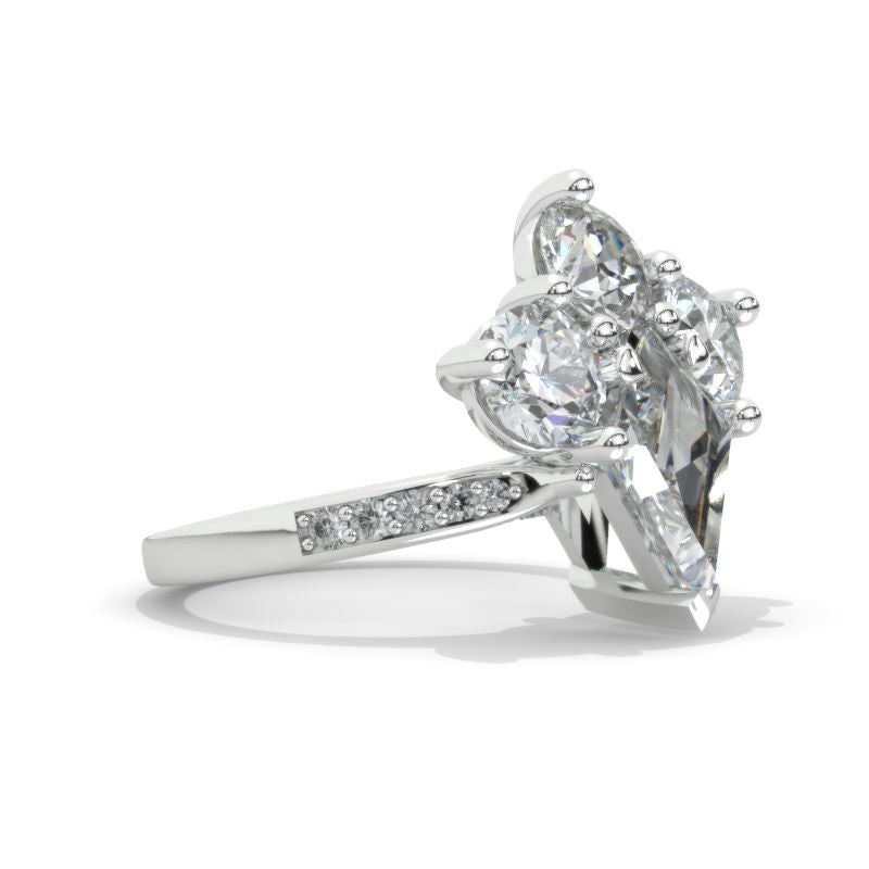 Engagement Approximately 2.5+ Carat LAB-Grown Diamond Kite 12x8mm D-Colorless, VVS1-Clarity, VG-Cut, Ex-Polish, VG-Symmetry Center Stone 14K White Gold Ring.