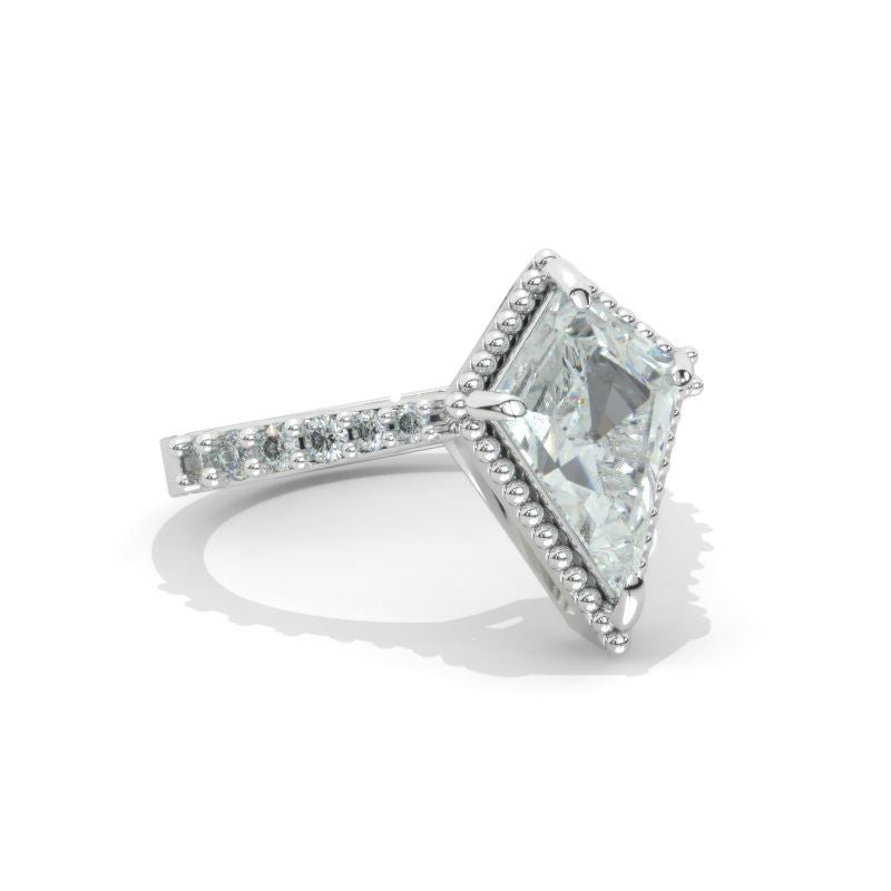 14K White Gold 2.5 Carat Kite Moissanite Engagement Ring Unique Fancy Shape Ring Model 1184-12x8