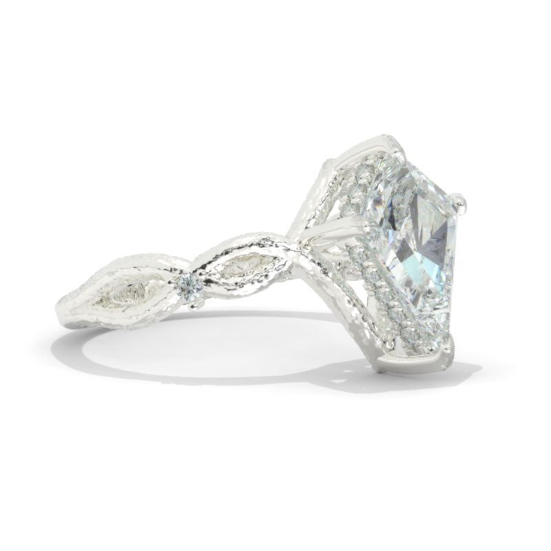 Engagement 2.5 Carat Giliarto Moissanite Kite 12x8mm D-Colorless, VVS1-Clarity, VG-Cut, Ex-Polish, VG-Symmetry Center Stone 14K White Gold Ring.