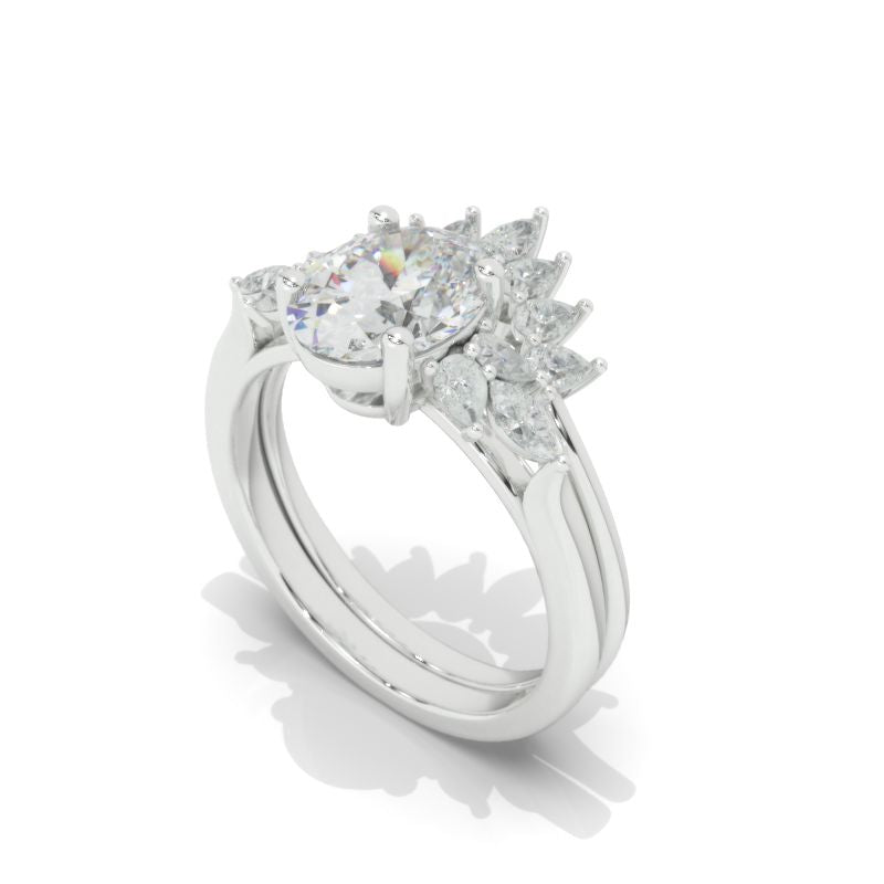 Engagement : 2.5 Carat Giliarto Moissanite Oval 9x7mm D-Colorless, VVS1-Clarity, VG-Cut, Ex-Polish, VG-Symmetry Center Stone with 38 D-Colorless 0.5 CTW Moissanite