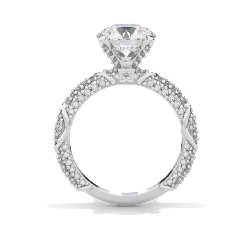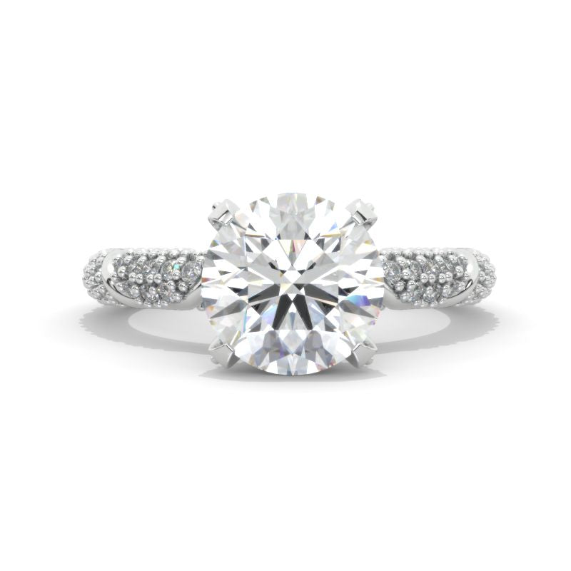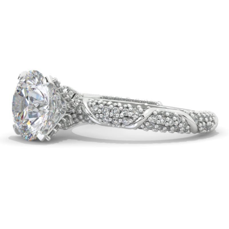 Engagement Ring : Approximately 2+ Carat LAB-Grown Diamond 8mm Round D- Colorless, VVS1-Clarity, VG-Cut, Ex-Polish, VG-Symmetry Center Stone with 0.5 CTW Accent Stones in