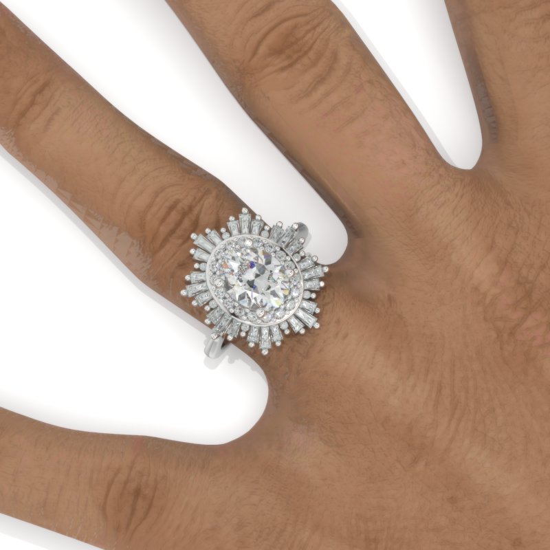 Engagement Ring: LAB-Grown Diamond Oval 8x6mm D-Colorless, VVS1-Clarity, VG-Cut, Ex-Polish, VG-Symmetry Center Stone with 38 D-Colorless Approximate 1.5+ CTW LAB-Grown Diamond
