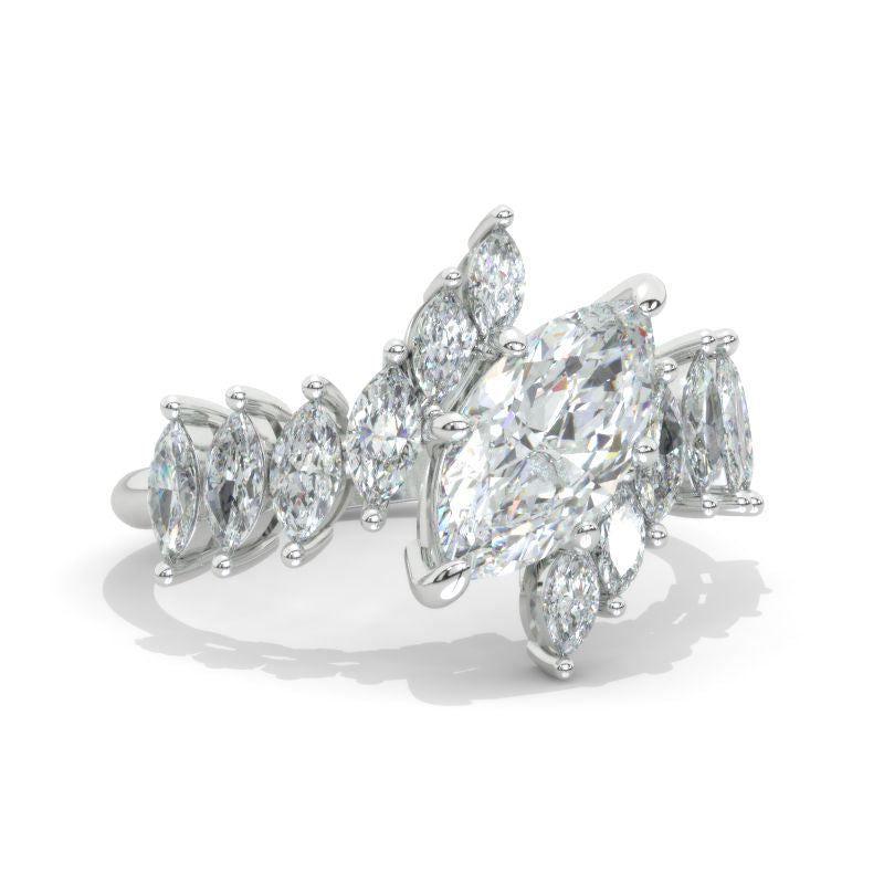Engagement Ring: 2 Carat Giliarto Moissanite Marquise 12x6mm D-Colorless VVS1-Clarity, VG-Cut, Ex-Polish, VG-Symmetry Center Stone with  Colorless 0.9 CTW Moissanite