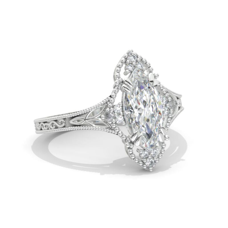 Engagement Ring: 2 Carat Giliarto Moissanite Marquise 12x6mm D-Colorless VVS1-Clarity, VG-Cut, Ex-Polish, VG-Symmetry Center Stone with Colorless 0.4 CTW MoissaniteÂ