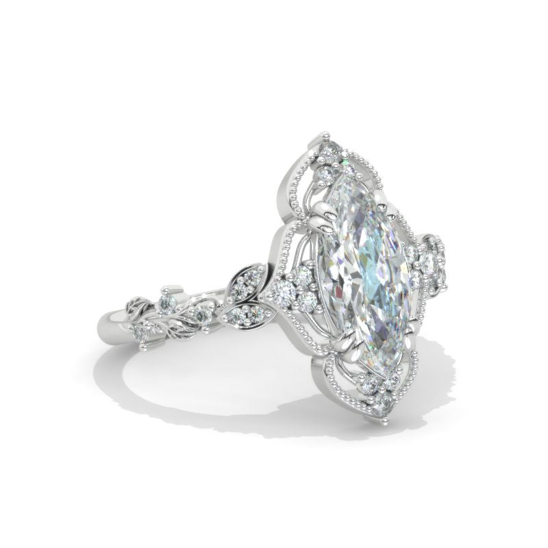 14K White Gold 2 Carat Marquise Cut Moissanite Halo Engagement Ring Mo - Giliarto