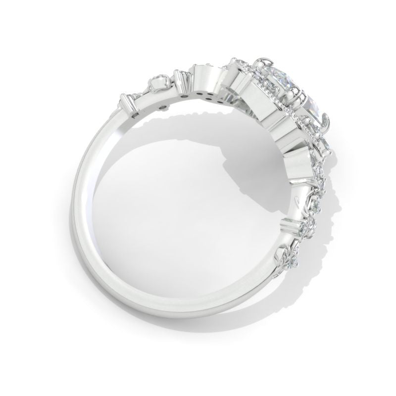 14K White Gold 2 Carat Marquise Cut Moissanite Halo Engagement Ring Model 1331
