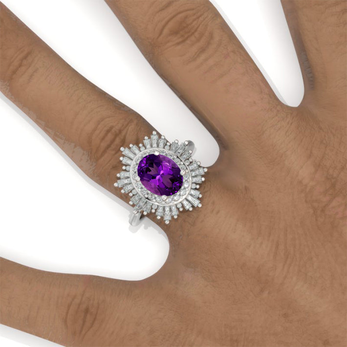 14K White Gold 2 Carat Oval Halo Natural Amethyst Engagement Ring - Giliarto