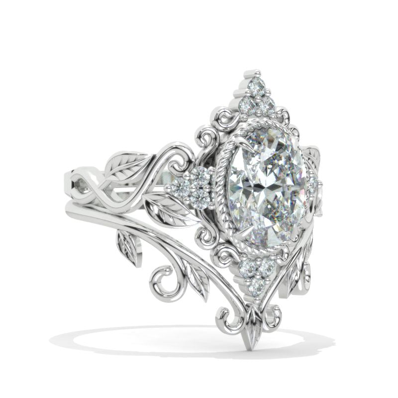 Engagement Approximately 2+ Carat LAB-Grown Diamond Oval 9x7 mm D-Colorless, VVS1-Clarity, VG-Cut, Ex-Polish, VG-Symmetry Center Stone 14K White Gold Ring.