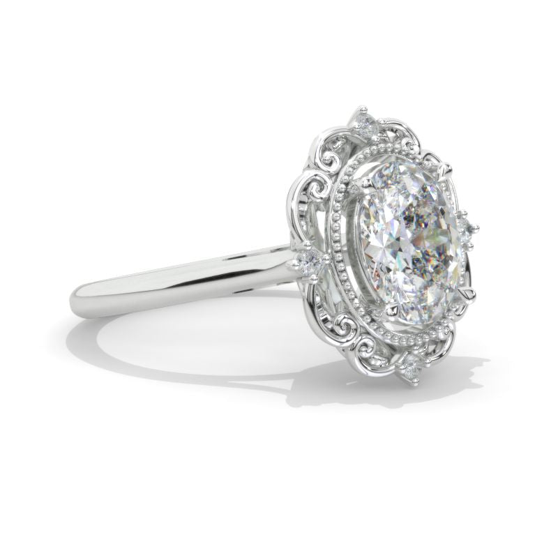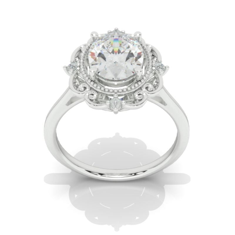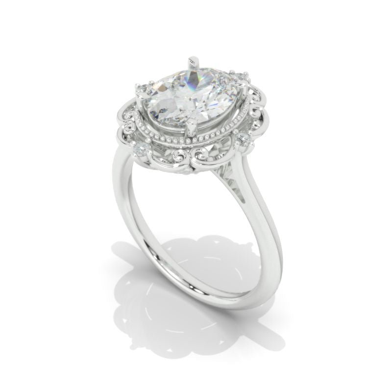 14K White Gold 2 Carat Oval LAB-Grown Diamond Halo Vintage Engagement Ring Model 538