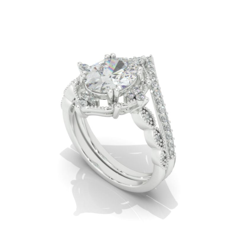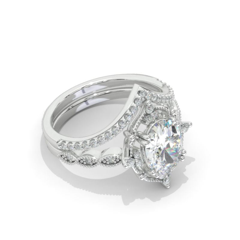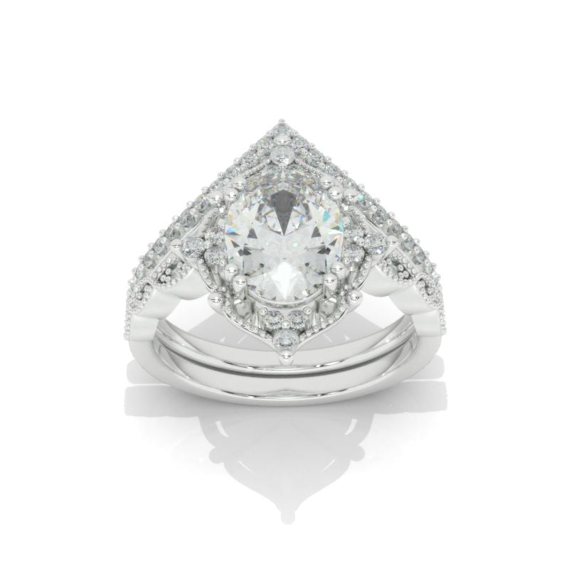 Engagement : Approximately 2+ Carat LAB-Grown Diamond Oval 9x7mm D-Colorless, VVS1-Clarity, VG-Cut, Ex-Polish, VG-Symmetry Center Stone with 38 Colorless 0.5 CTW LAB-Grown Diamond