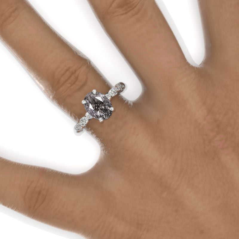 Engagement Ring: 2 Carat Natural Rutilated Quartz Oval 9x7mm VVS1-Clarity, VG-Cut, Ex-Polish, VG-Symmetry Center Stone with 18 Colorless 0.4 CTW Moissanite