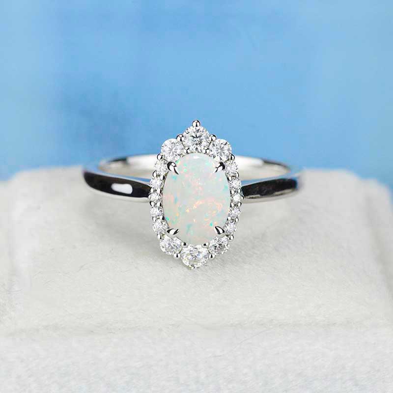 14K White Gold 2 Carat Oval White Opal Halo Engagement Ring - Giliarto