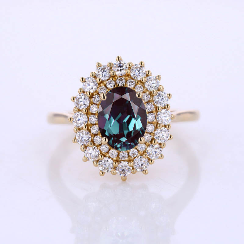 14K White Gold 3.2 CTW Oval Alexandrite Double Halo Engagement Ring - Giliarto