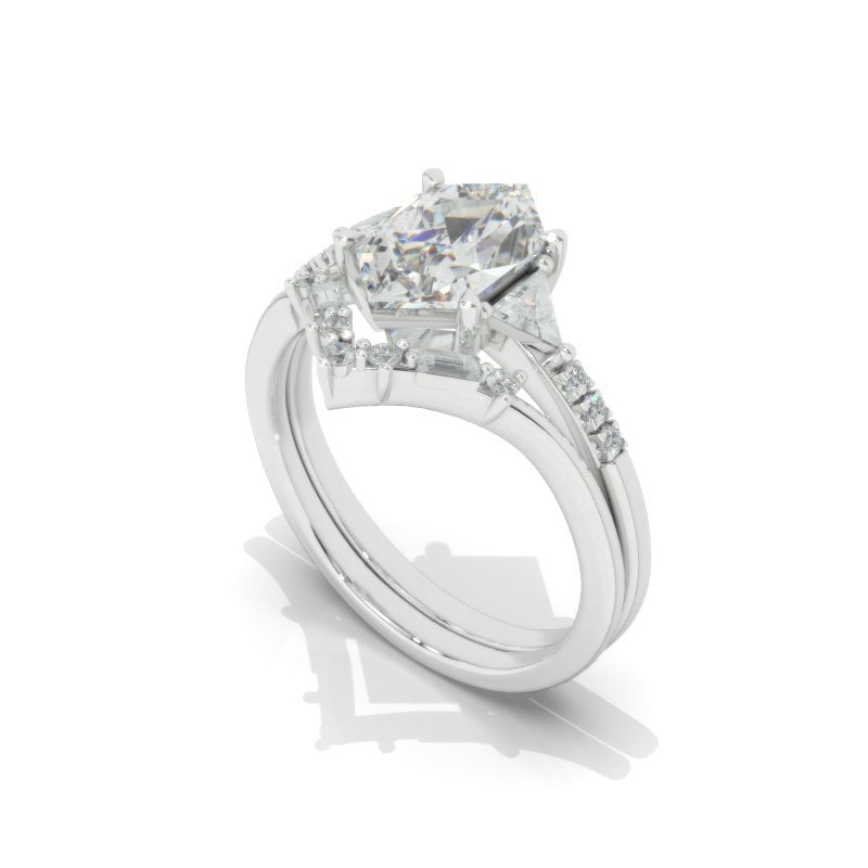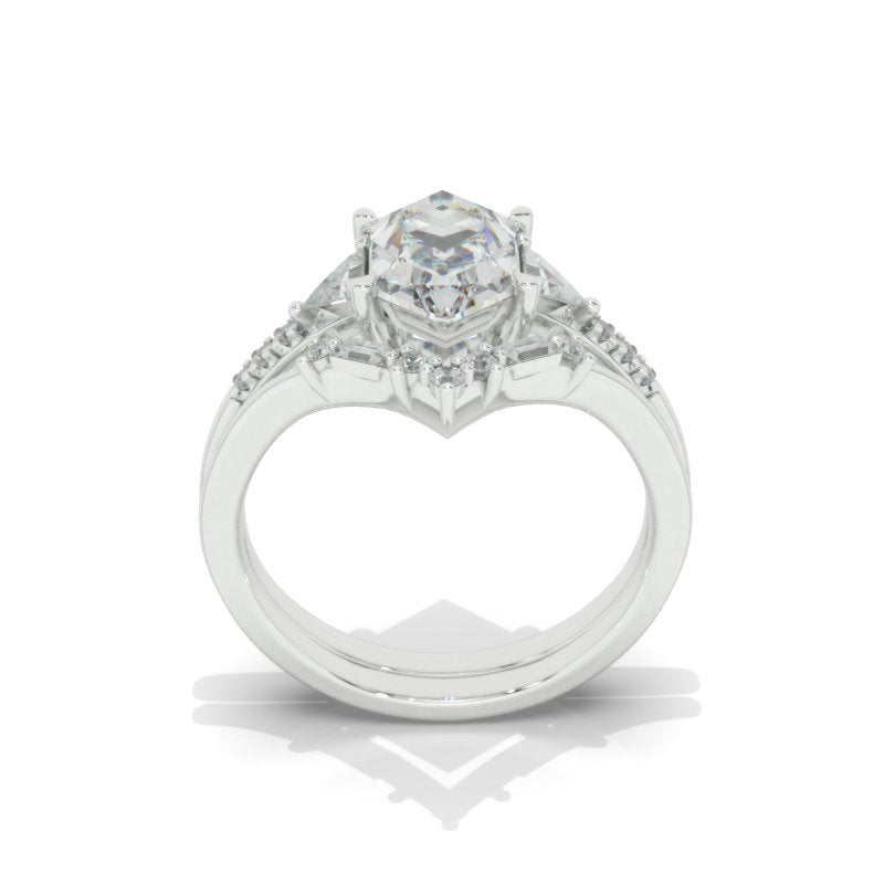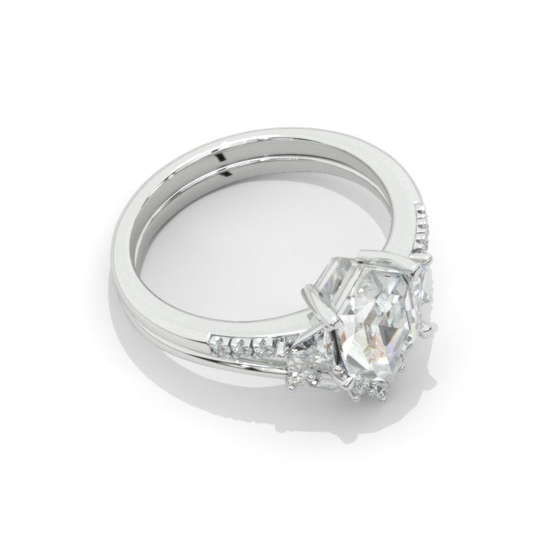 Engagement 3 Carat Giliarto Moissanite Elongated Hexagon 10x6mm D-Colorless, VVS1-Clarity, VG-Cut, Ex-Polish, VG-Symmetry Center Stone with 38 Colorless 0.5 CTW Moissanite