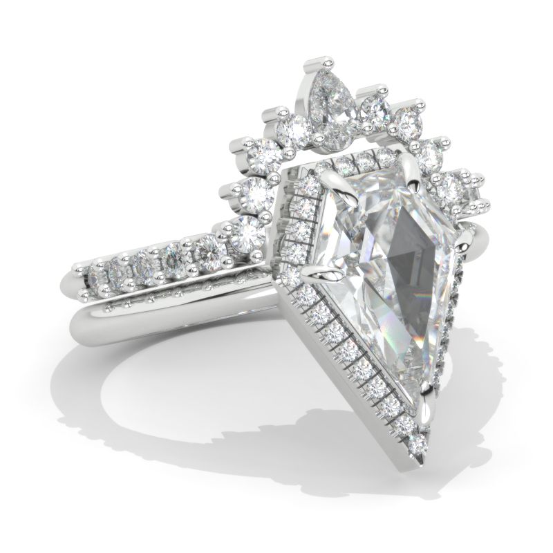 Engagement Approximately 3+ Carat LAB-Grown Diamond Kite 12x8mm D-Colorless, VVS1-Clarity, VG-Cut, Ex-Polish, VG-Symmetry Center Stone with D- Colorless 0.5 CTW LAB-Grown Diamond