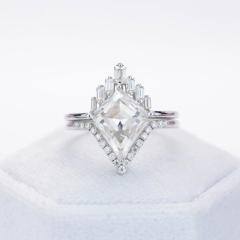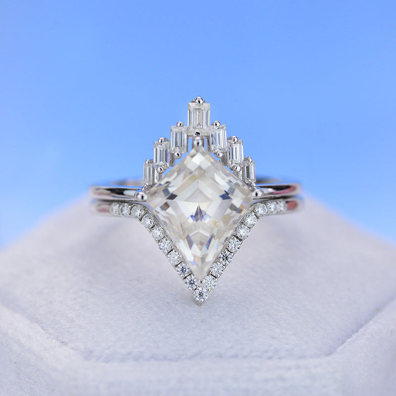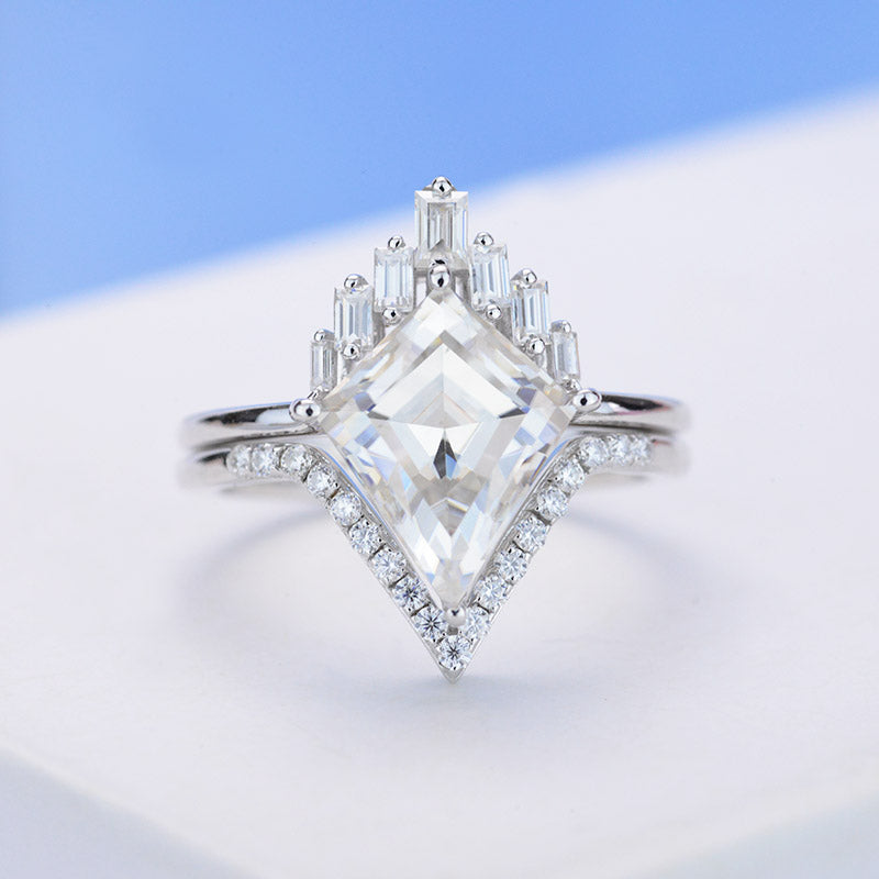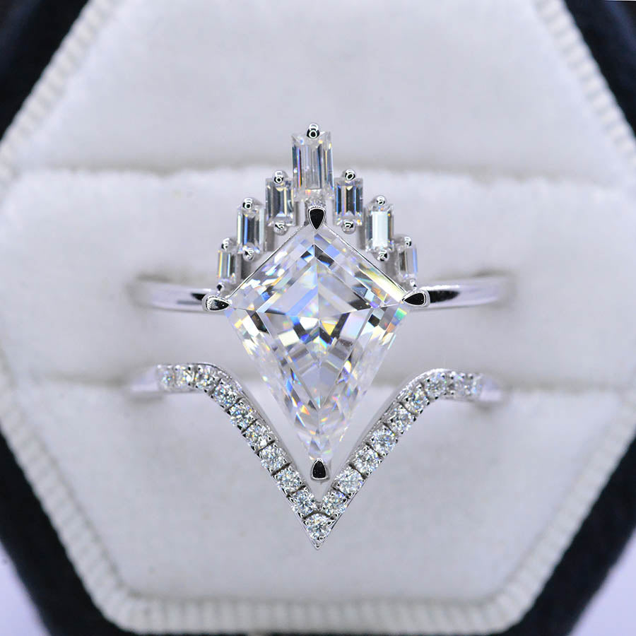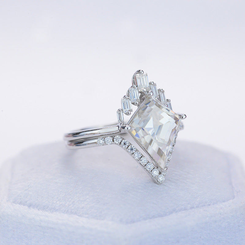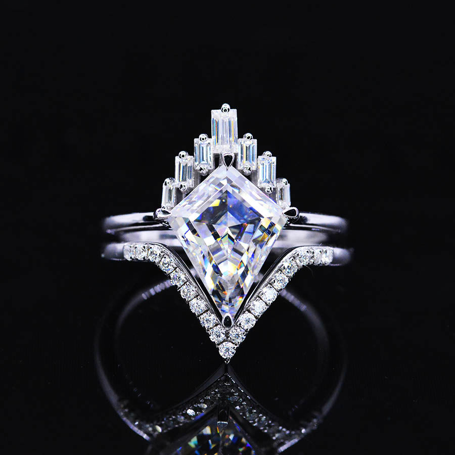 Engagement : 2.5 Carat Giliarto Moissanite Kite 12x8 mm D-Colorless, VVs1-Clarity, VG-Cut, Ex-Polish, VG-Symmetry Center Stone with 38 Colorless 0.5 CTW Moissanite