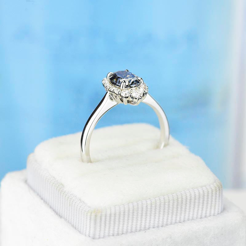 14K White Gold 3 Carat Oval Alexandrite Halo Engagement Ring - Giliarto