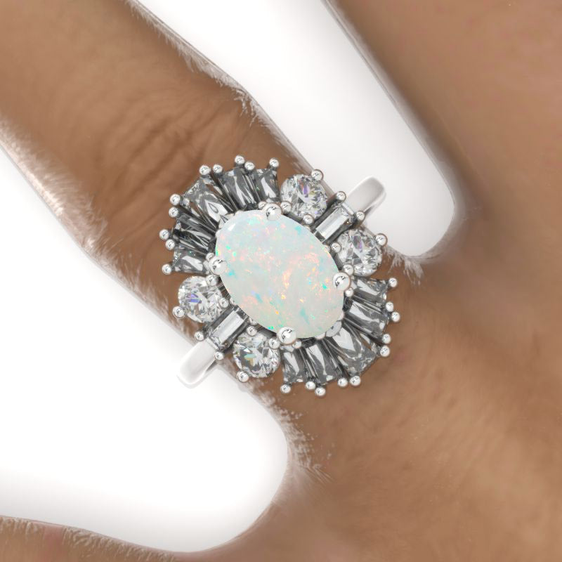 14K White Gold 3 Carat Oval Genuine Natural White Opal Halo Engagement Ring