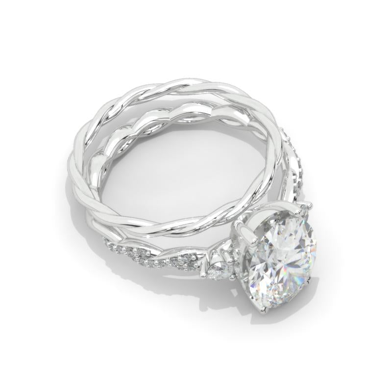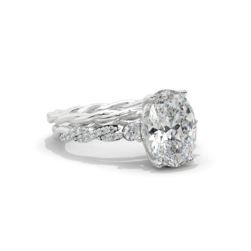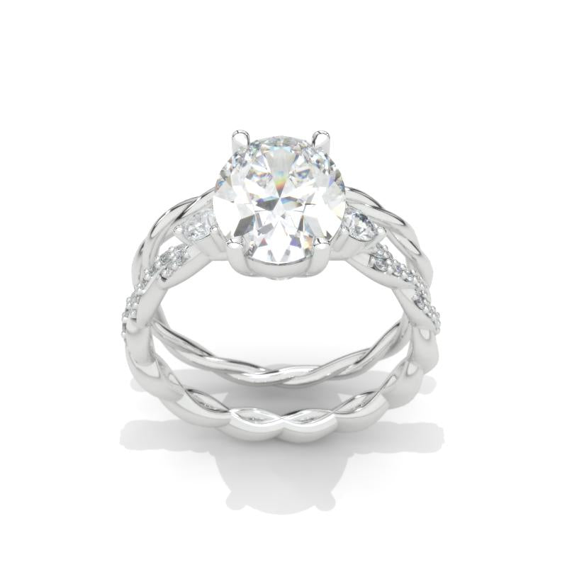 Engagement : Approximately 3+ Carat LAB-Grown Diamond Oval 11x8mm D-Colorless, VVS1-Clarity, VG-Cut, Ex-Polish, VG-Symmetry Center Stone with 2 D-Colorless 0.3 CTW LAB-Grown Diamond