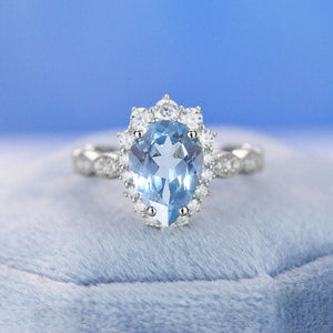 14K White Gold 3 Carat Pear Aquamarine Halo Engagement Ring