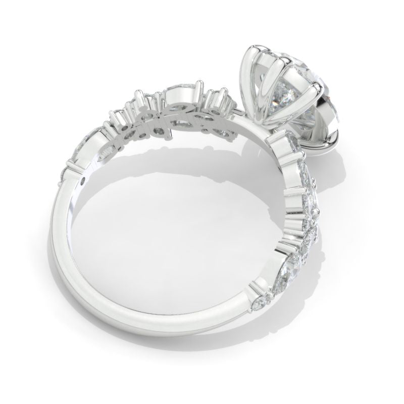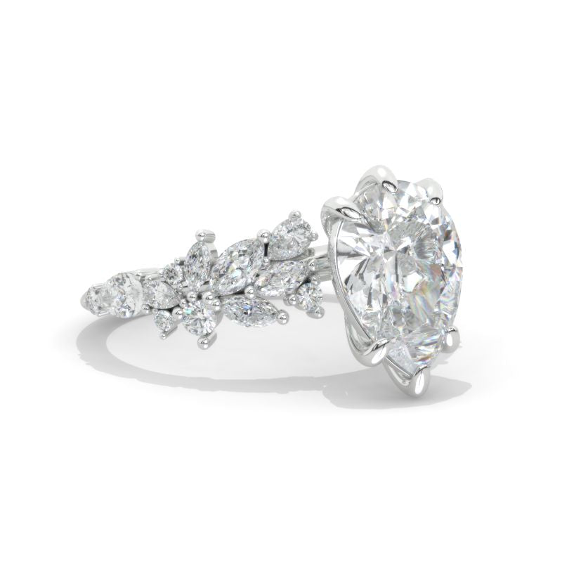 Engagement Ring : 3 Carat Giliarto Moissanite Pear 11x8mm D-Colorless, VVS1-Clarity, VG-Cut, Ex-Polish, VG-Symmetry Center Stone with Colorless