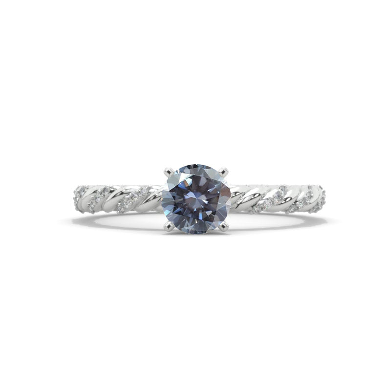 14K White Gold 6mm Round Gray Moissanite 1/8 CTW Engagement Ring