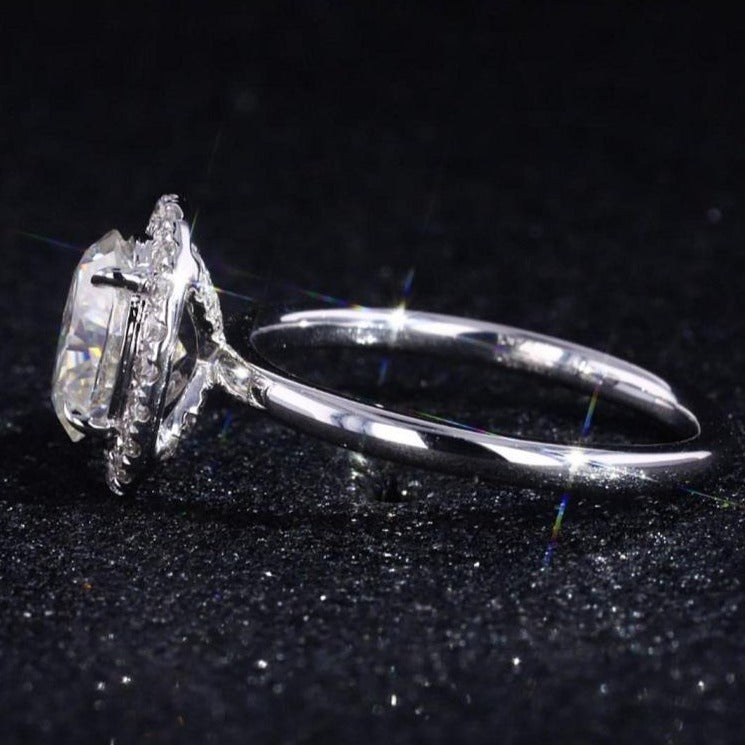 The default design option features 3 Carat 10x8mm Oval Cut Giliarto Moissanite stone,  D-Colorless, VVS1-Clarity, VG-Cut, Ex-Polish, VG-Symmetry