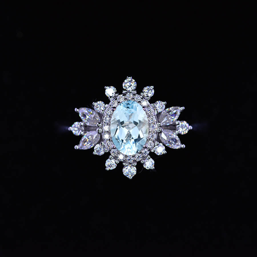 14K White Gold Oval Genuine Natural Aquamarine Snowflake Halo Engageme - Giliarto