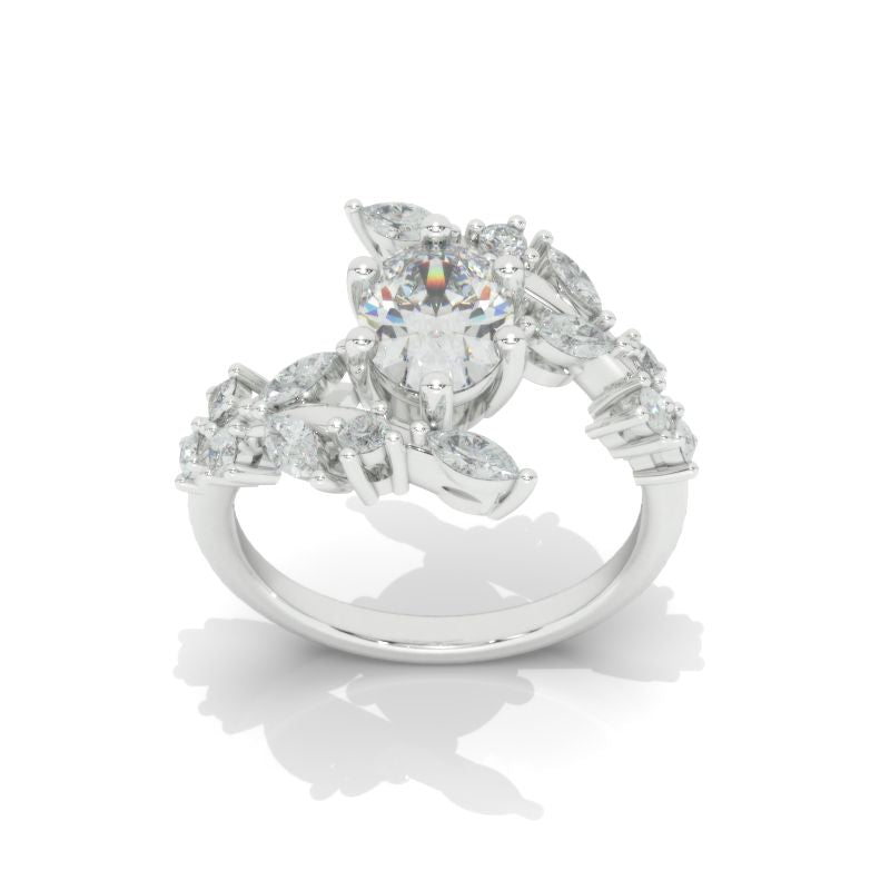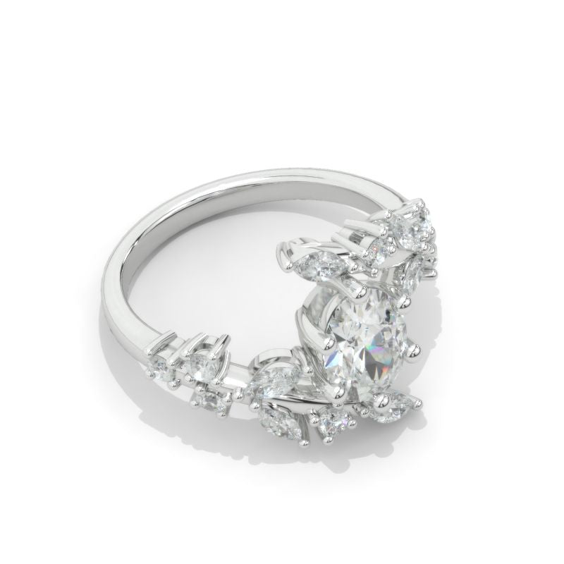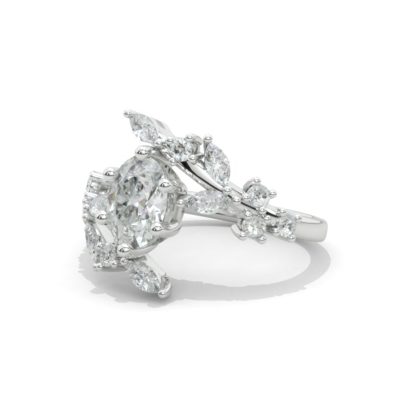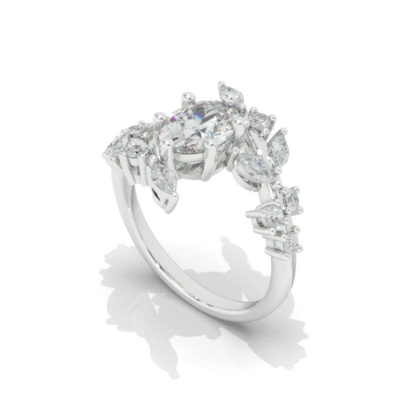 Engagement Approximately 1.9+ Carat LAB-Grown Diamond Oval 8x6mm D-Colorless, VVS1-Clarity, VG-Cut, Ex-Polish, VG-Symmetry Center Stone with 38 Colorless 1.5 CTW LAB-Grown Diamond
