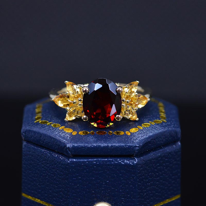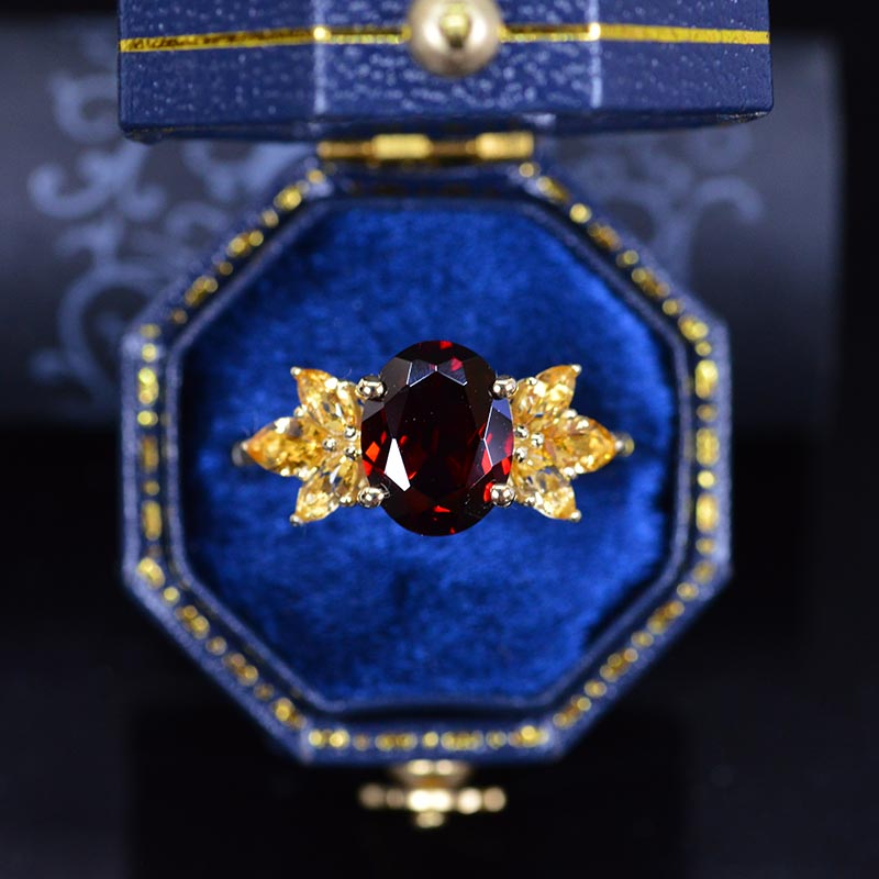 Engagement : 2 Carat Genuine Garnet  Oval-9x7 mm, VVS1-Clarity, VG-Cut, Ex-Polish, VG-Symmetry Center Stone with  Colorless 0.6 CTW Citrine
