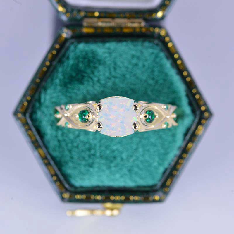 14K Yellow Gold Cushion Emerald Genuine White Opal Celtic Engagement R - Giliarto
