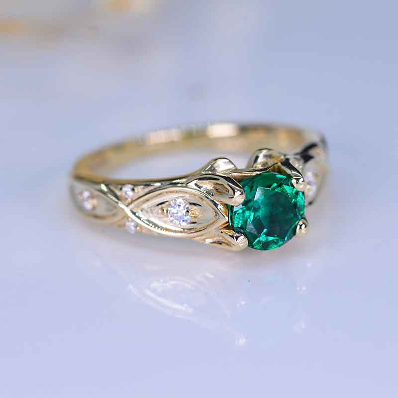 14K Yellow Gold Emerald Celtic Floral Engagement Ring