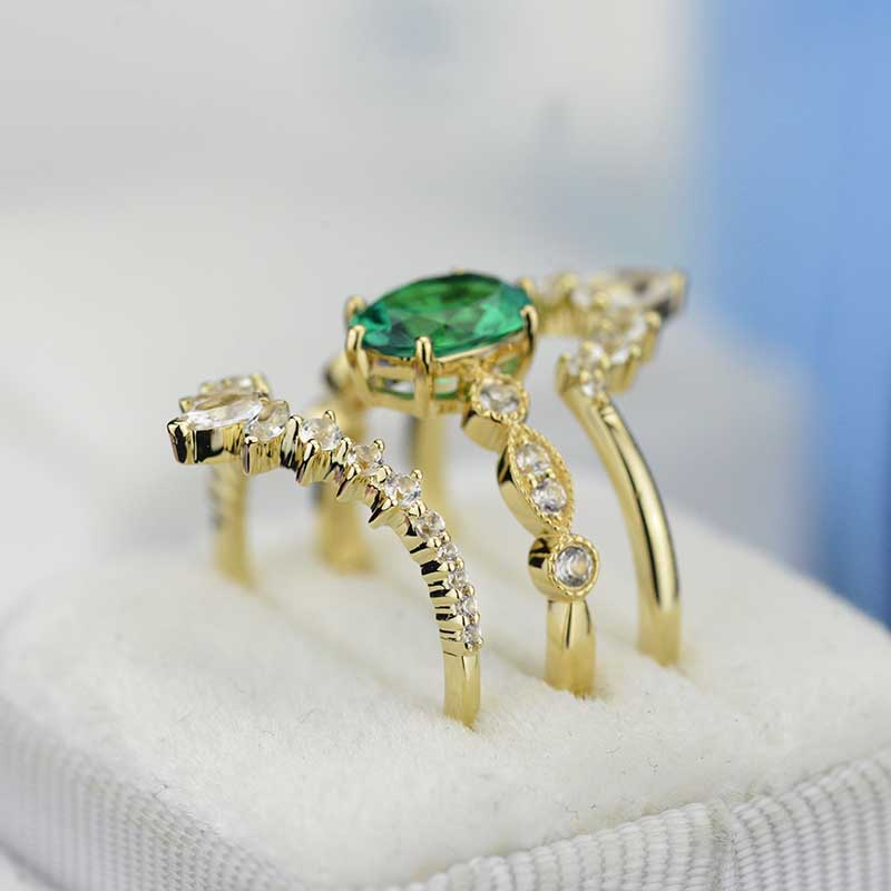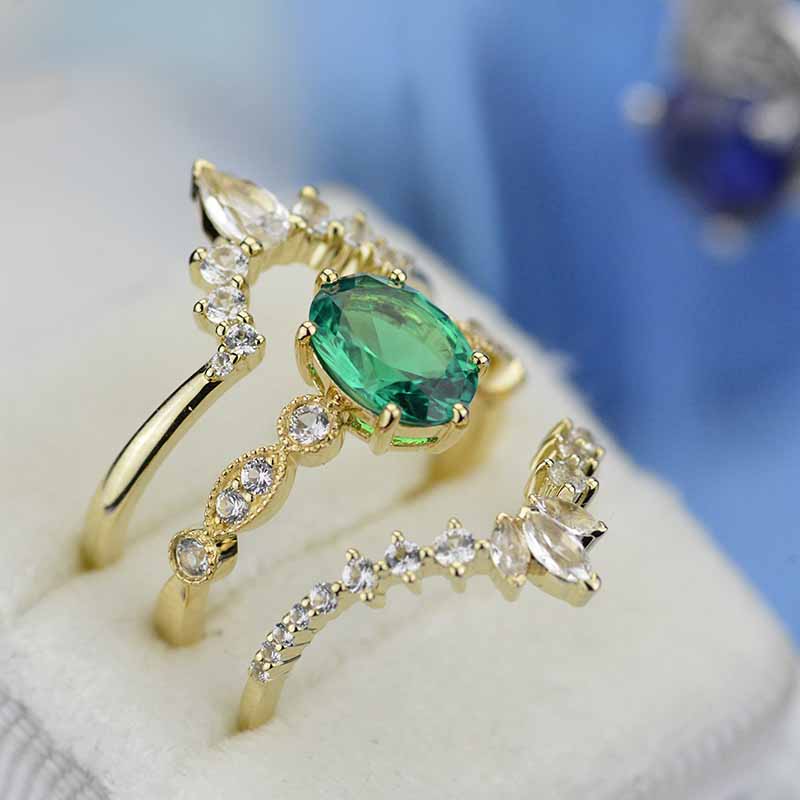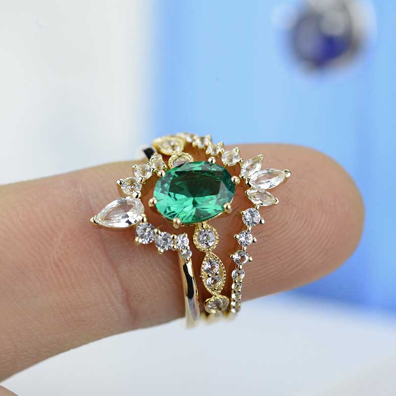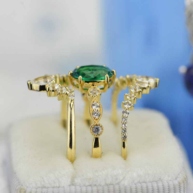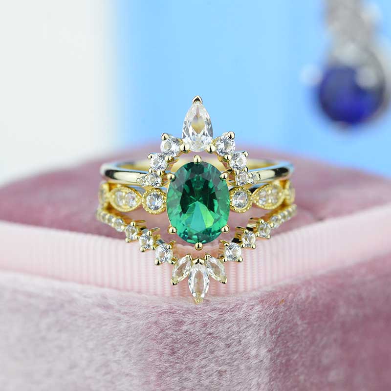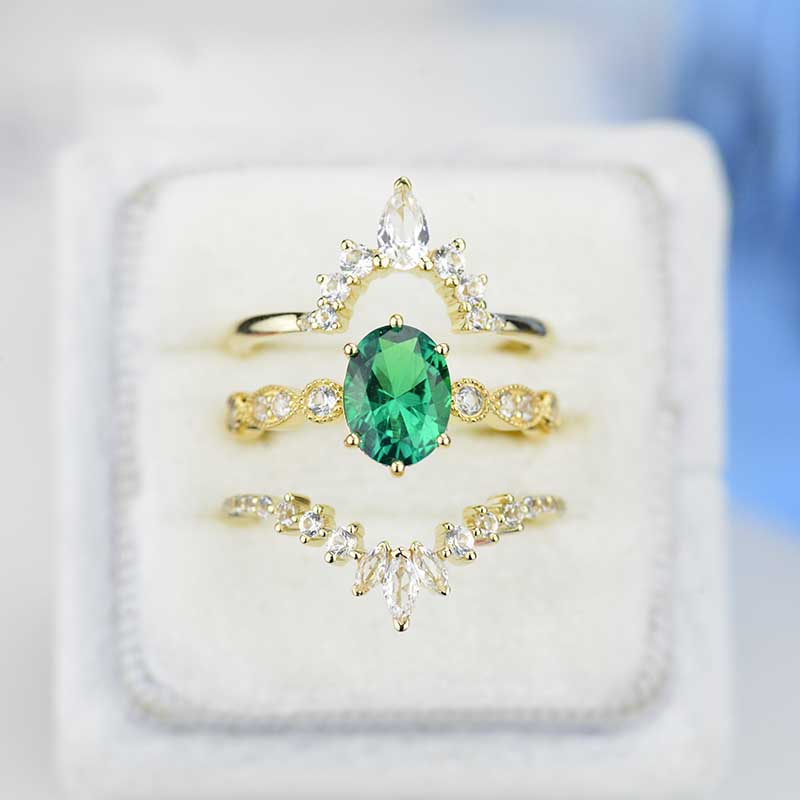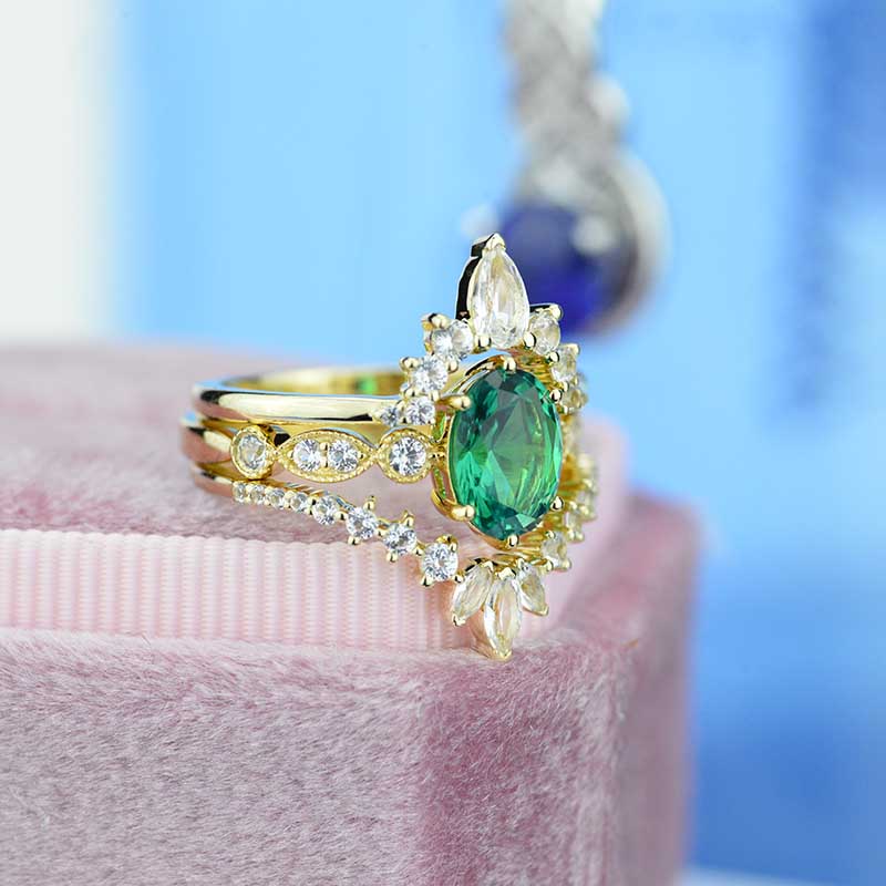 Engagement : 1.9 Carat Giliarto Created Emerald Oval 8x6 mm VVS1-Clarity, VG-Cut, Ex-Polish, VG-Symmetry Center Stone with 8 D-Colorless 0.1 CTW Moissanite