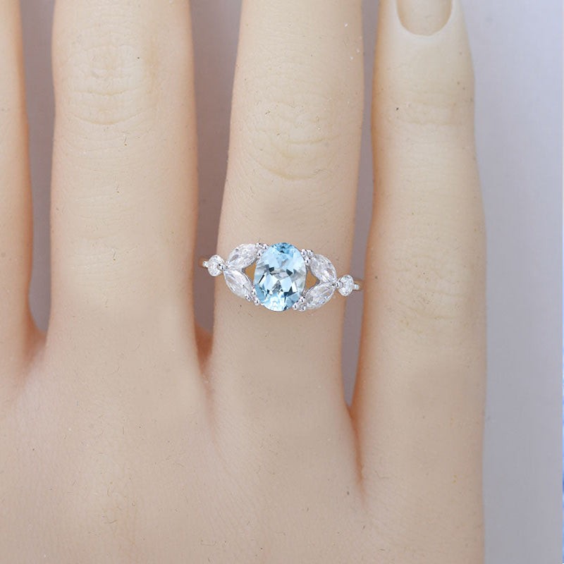 Vintage Design Oval Cut Genuine Natural Aquamarine Ring