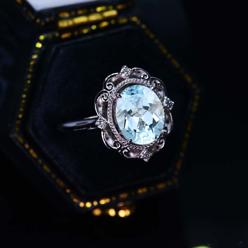 The default design option features 9x7mm Oval Shape Natural Aquamarine Stone,
